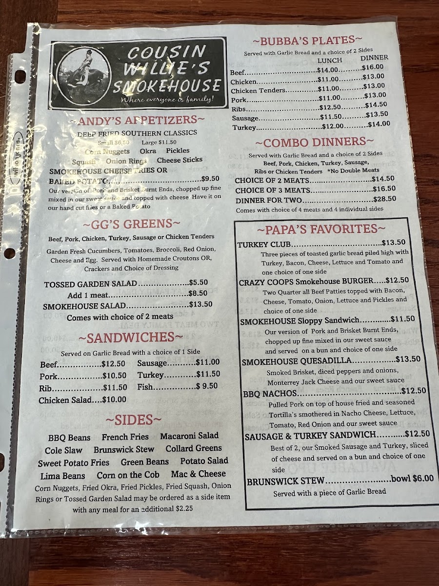 Beef, Chicken Tenders, Ribs, Shrimp or Turkey
